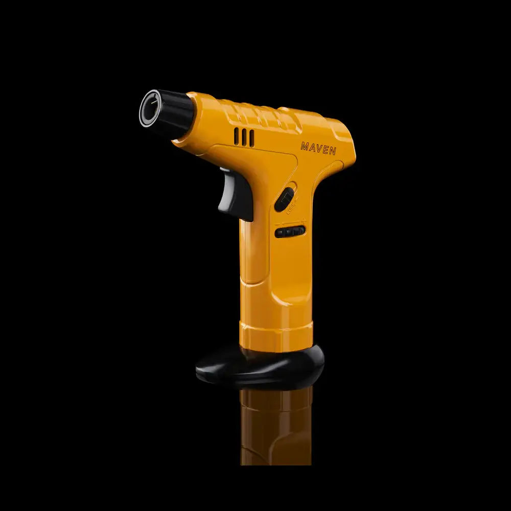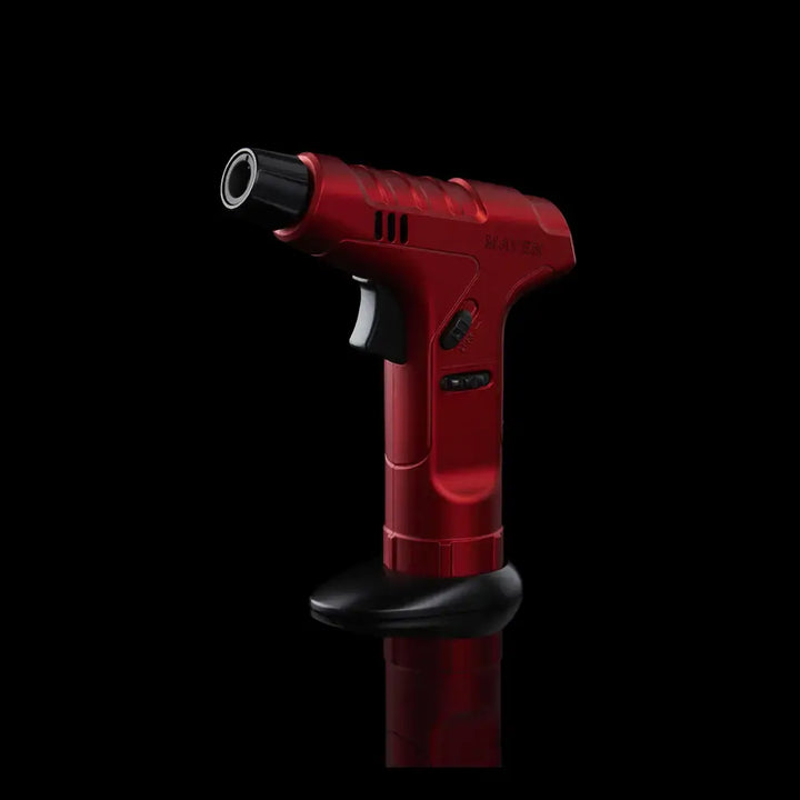 Introducing Maven Strength, the ultimate torch lighter designed for strength and endurance. Boasting a firm and durable grip exterior, a powerful angled flame, and a sleek rubber/metallic finish, Strength is the perfect cooking companion. Its convenient push-down ignition, safety lock/ignition hold feature, and sturdy base make it perfect for tabletop use.