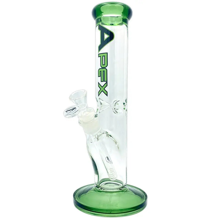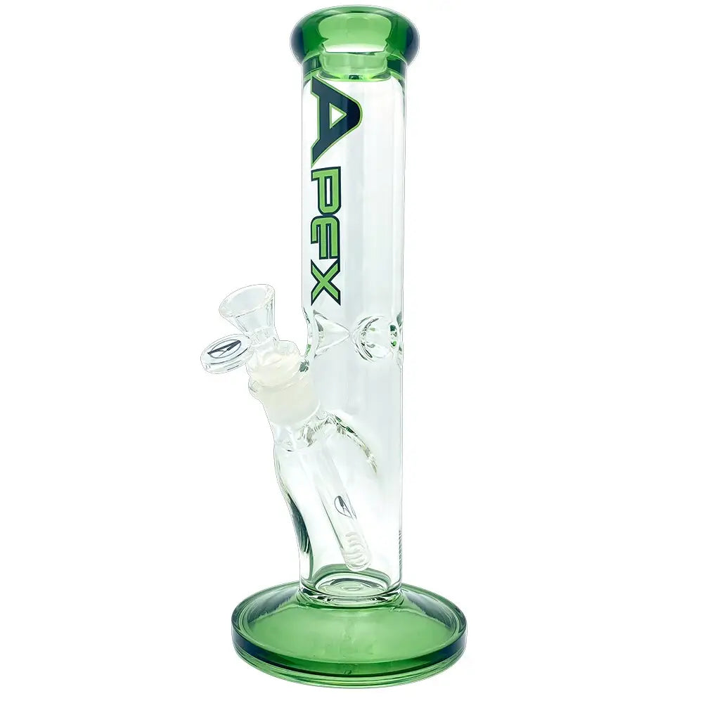 Introducing the Apex 12" Glass Bong! This straight tube design provides smooth hits for an elevated experience. Easy to use, it's perfect for new and seasoned smokers alike. Upgrade your smoking game with the Apex Glass Bong. (Get lit with the Apex Glass Bong - straight tube, 12 inches of pure delight!)
