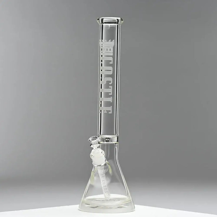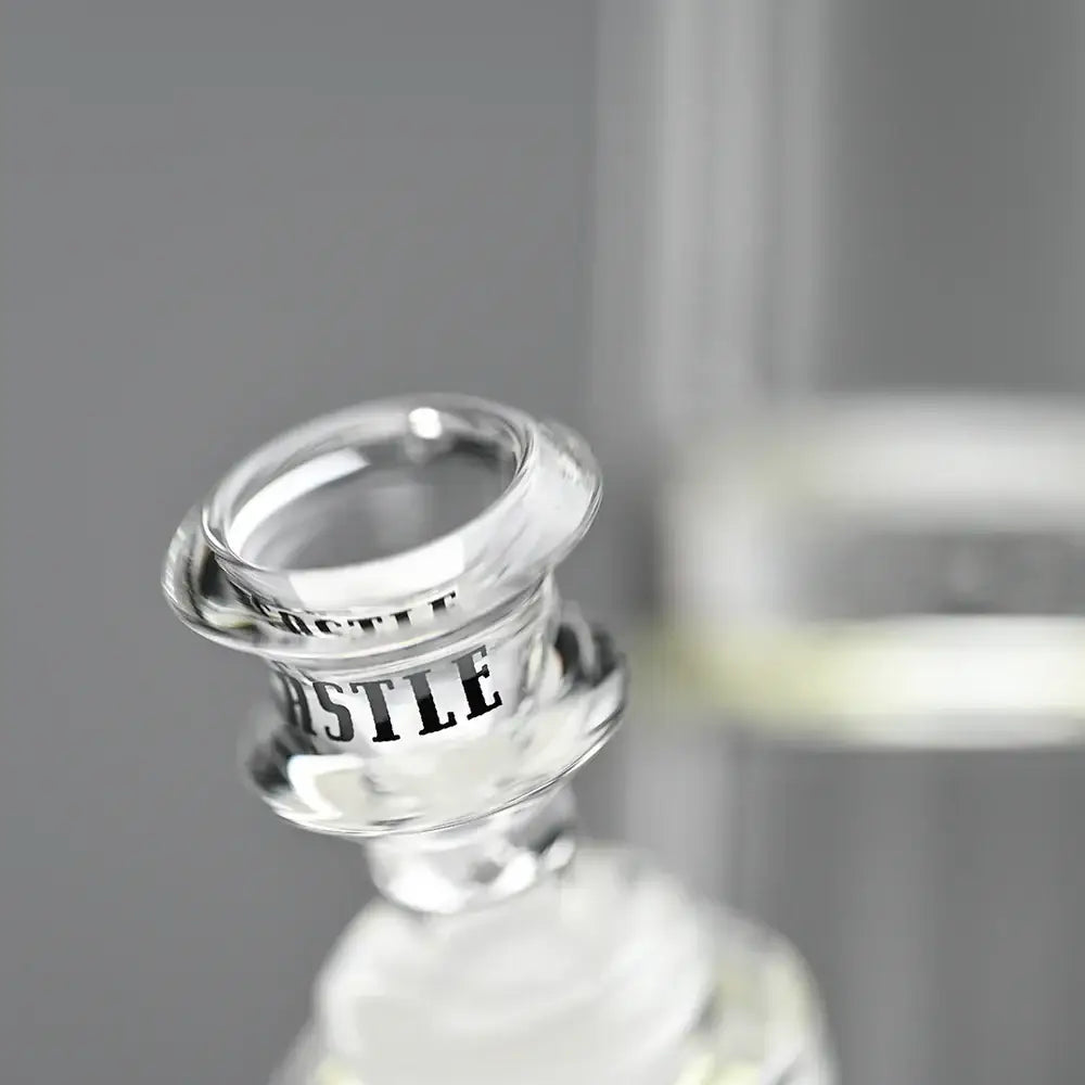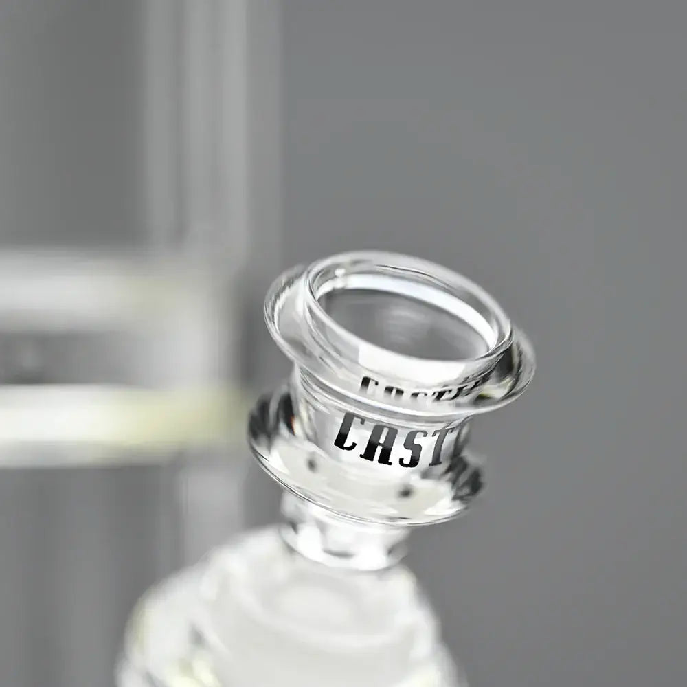Need a beaker that's both cool and tough? Check out Castle Glassworks' Laser Etched Beaker! This glass marvel is made from top-notch borosilicate, so it's built to last. Plus, its beefy 12mm base is 5 inches wide, so no need to worry about spills!