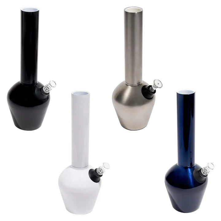 Chill Stainless Steel Bongs are a total package, including a patented Vacuum Insulated Stainless Steel Base (coloured or stainless, depending on the model), a standard 8.5" Stainless Steel Neckpiece (13" in total, with colour or stainless depending on model), a durable Aluminum Diffuser Down Stem, a Borosilicate Glass Slide, and the Chill Lifetime Guarantee. Say goodbye to chemical cleaners and hello to easy cleaning with ISO. These bongs are available in Glossy Black, Blue, White, and Stainless finishes.