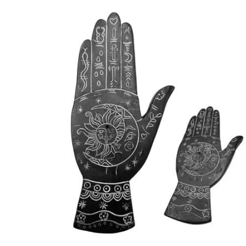 Discover the mysterious art of palm reading with this incense burner shaped like a palmistry hand. Perfect for revealing your future or just adding a touch of whimsy to your space.