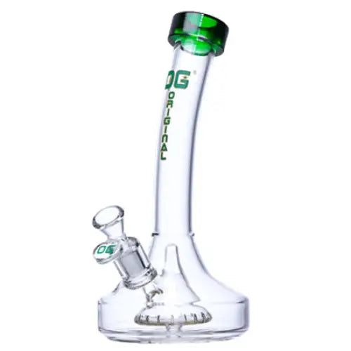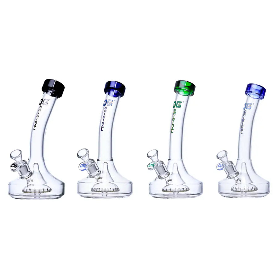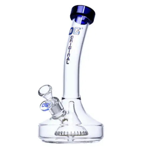 These 10" tall curved neck beakers are quite unique looking and feature a large showerhead perc that will produce a ton of bubbles. These are great for those looking for a smooth, compact, hard hitting toke. They come in a variety of colours and come with a removable 14mm male champagne glass bowl.